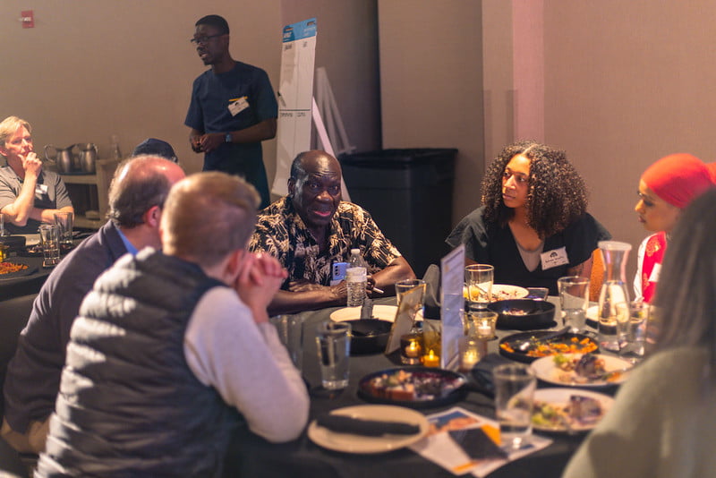 The evening’s meal, made by BernBaum’s Chef Candace Stock, included Indigenous options with a menu of braised lamb, potato samosas, peri peri broasted chicken, jollof rice with plantains and sweet corn cake with blueberry wojapi.